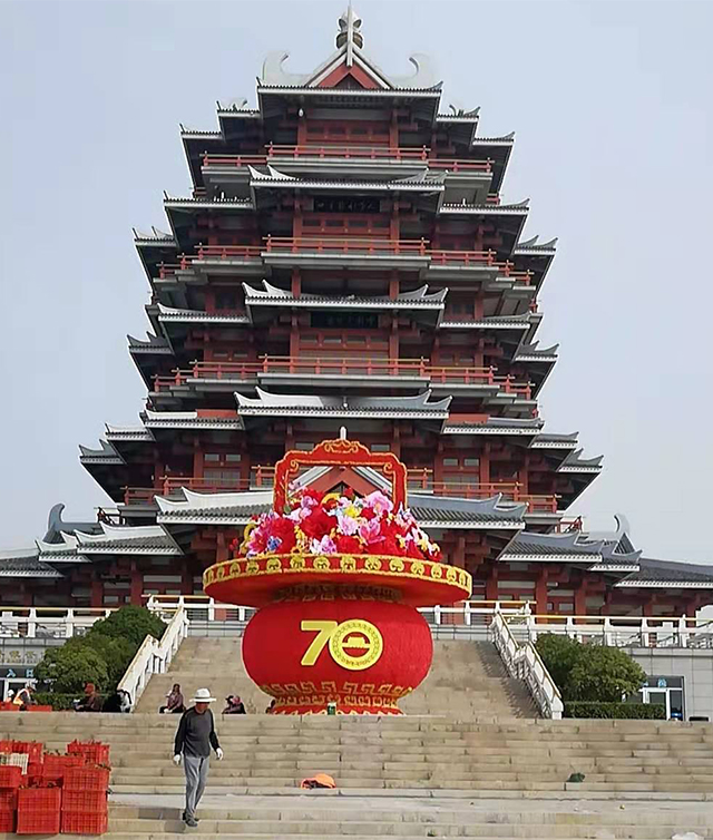 國慶70周年可謂舉國歡慶,同時作為旅游旺季,各景區為了吸引游客也是不遺余力,這不,國慶前期,龍君展覽又一仿真“大花籃”成功落座邳州沙溝湖景區,仿真大花籃安裝在景區內的隆鑫閣前方,構造一處獨特的景觀。